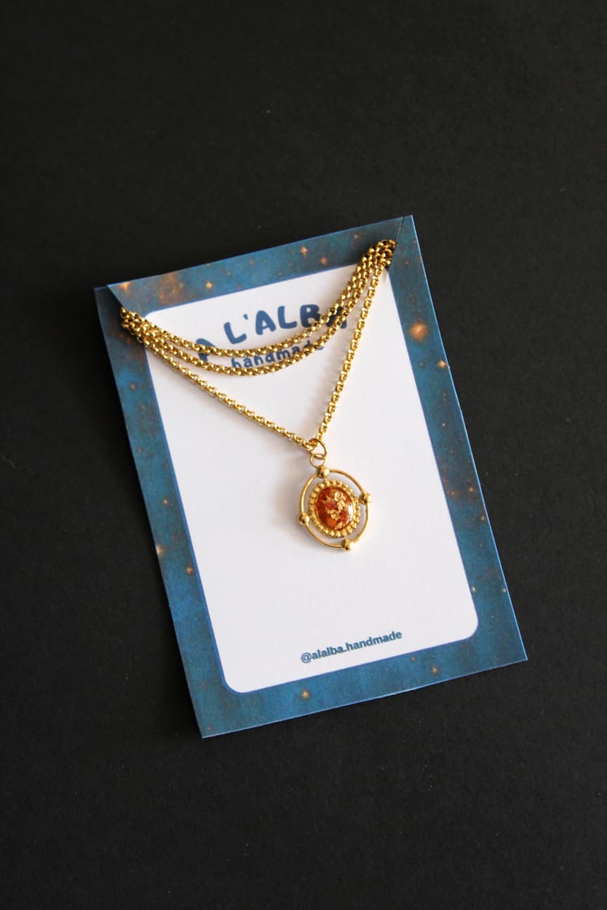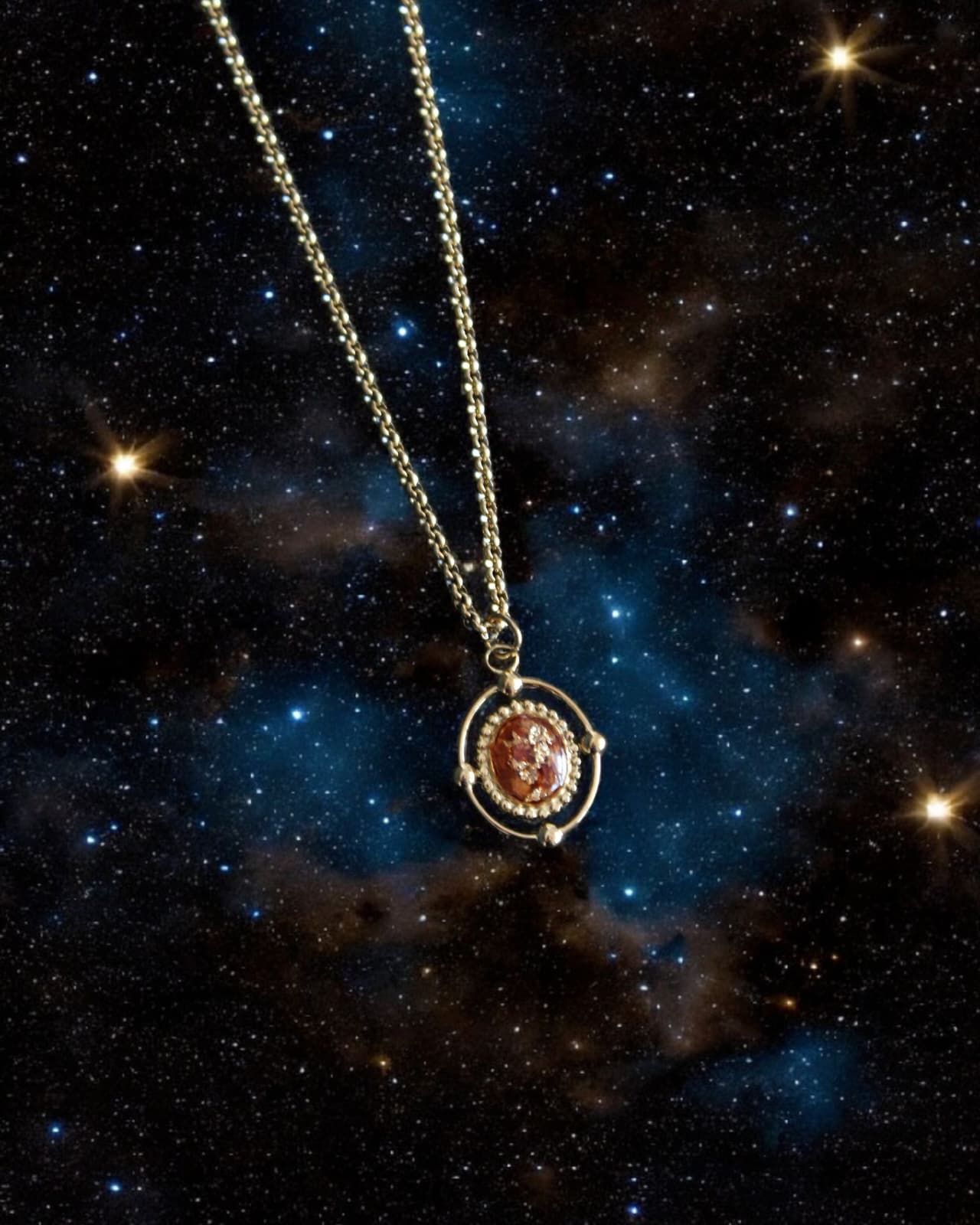 Colgante hecho a mano con pétalos de rosa marrón y pan de oro.